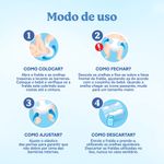 4) Enrole a fralda e prenda-a, utilizando as orelhas ajustáveis. Descartar as fraldas utilizadas no lixo, nunca no vaso sanitário.