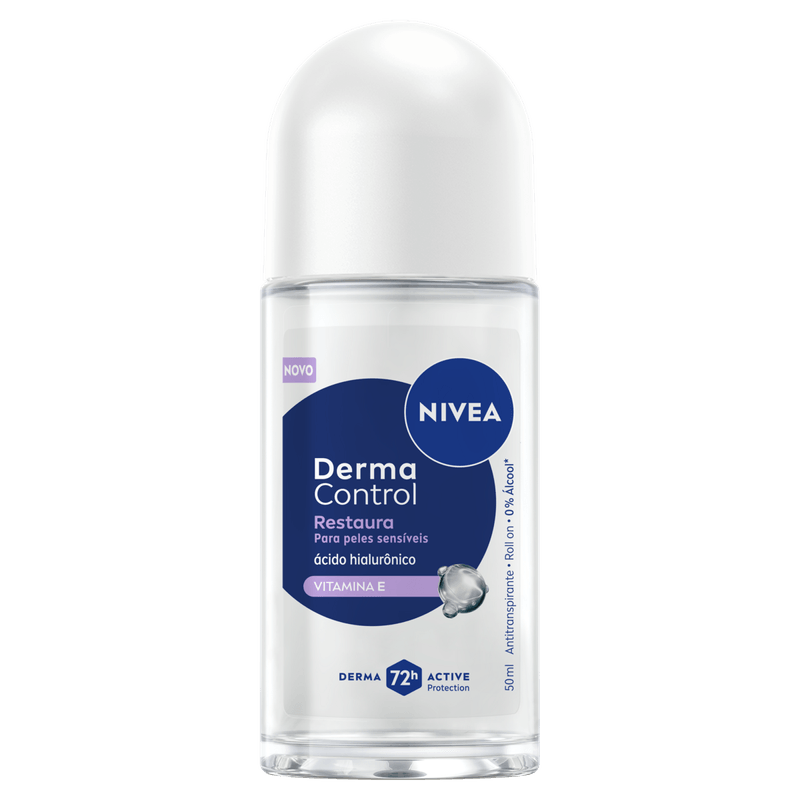 Antitranspirante Roll-On Ácido Hialurônico Vitamina E 72h Nivea Derma Control Restaura 50ml