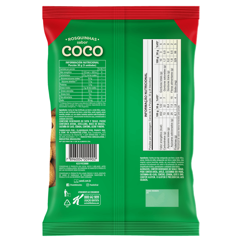 O Biscoito Rosquinha Coco Parati é a escolha ideal para quem aprecia o sabor tropical e a crocância irresistível. Com um toque especial de coco, ele é perfeito para acompanhar suas bebidas favoritas ou para ser saboreado como lanche a qualquer hora do dia.