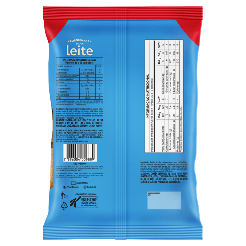 O Biscoito Rosquinha Leite Parati combina sabor e tradição em um formato clássico que conquista toda a família. Com uma textura crocante e o delicioso sabor de leite, é ideal para acompanhar bebidas quentes ou ser apreciado como um lanche prático e delicioso a qualquer momento.