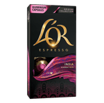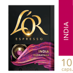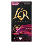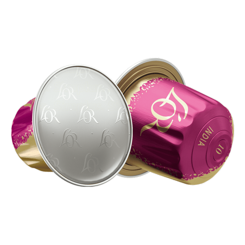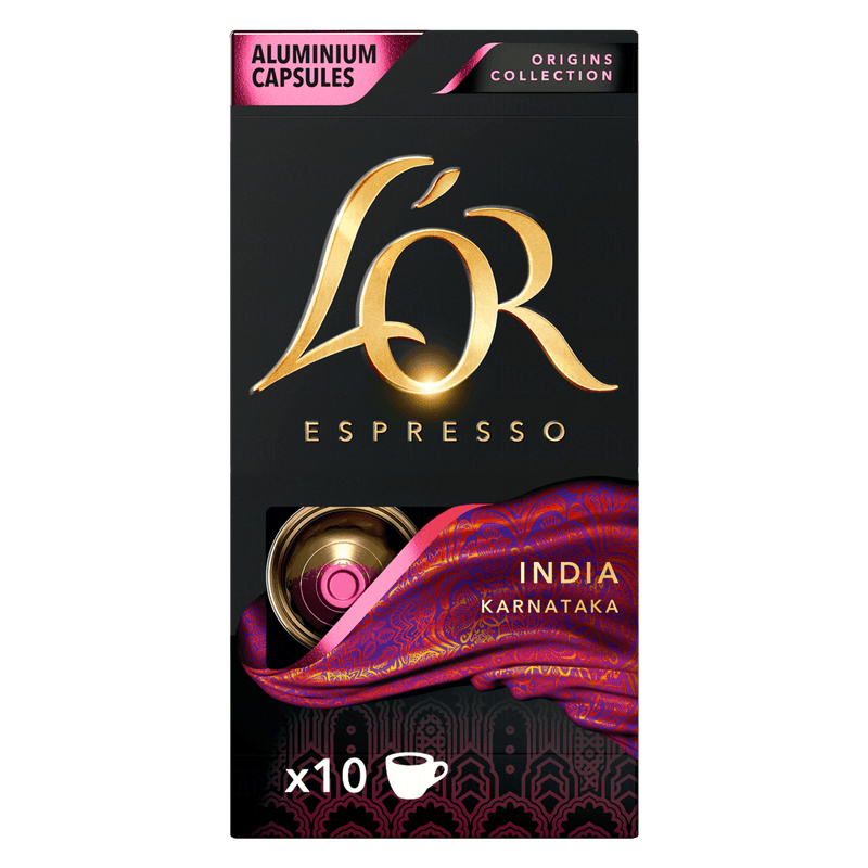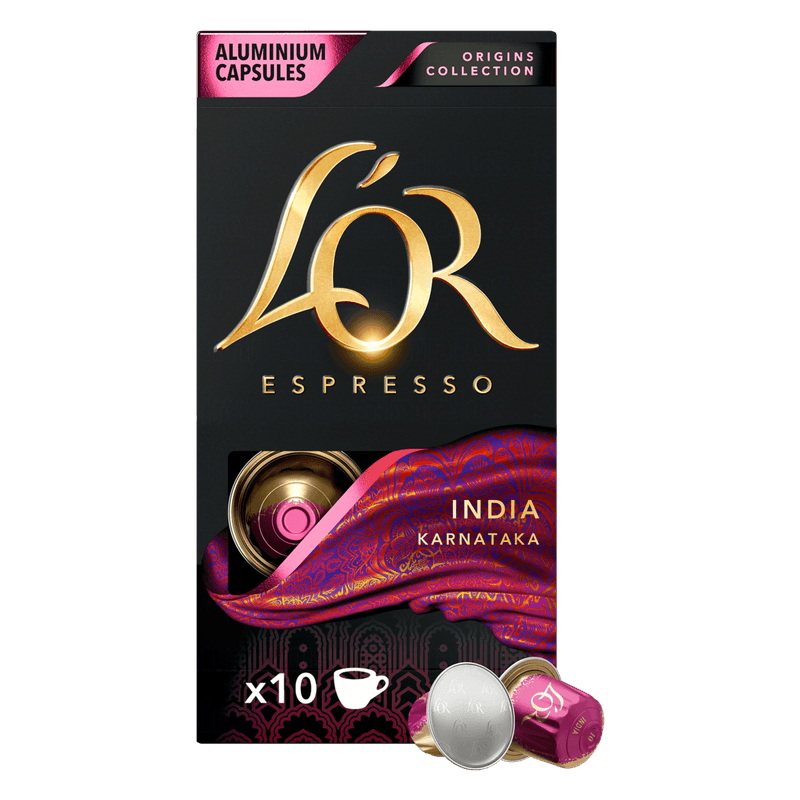 As cores vivas e as magníficas terras de Karnataka são capturadas no Índia. Uma mistura poderosa e delicada de notas de especiarias e frutas que evocam os aromas e delícias incríveis dos bazares locais, combinados com sabores ousados de caramelo escuro e cacau que o transportam para as colinas do sul da Índia, onde esses grãos são cultivados. Intensidade 10 melhor servido como Espresso (40ml) Cápsulas de Café L’or, compatíveis com máquinas de café Nespresso®*.