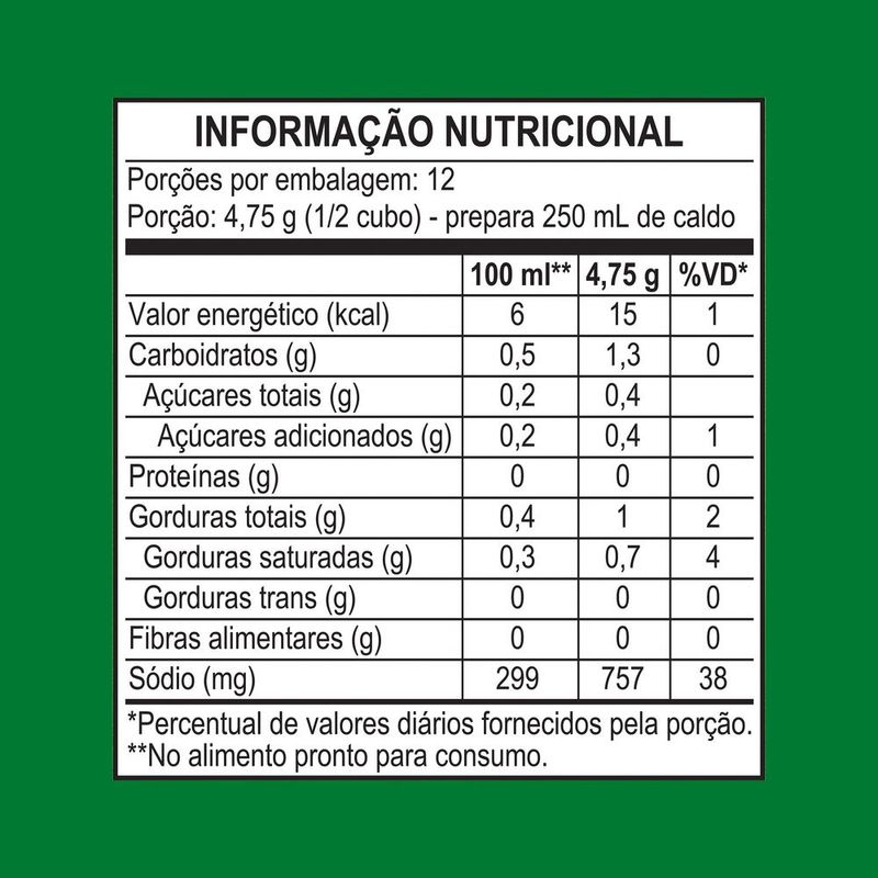 • Use 1 cubo para cada 600g de alimento: prático e rende muito