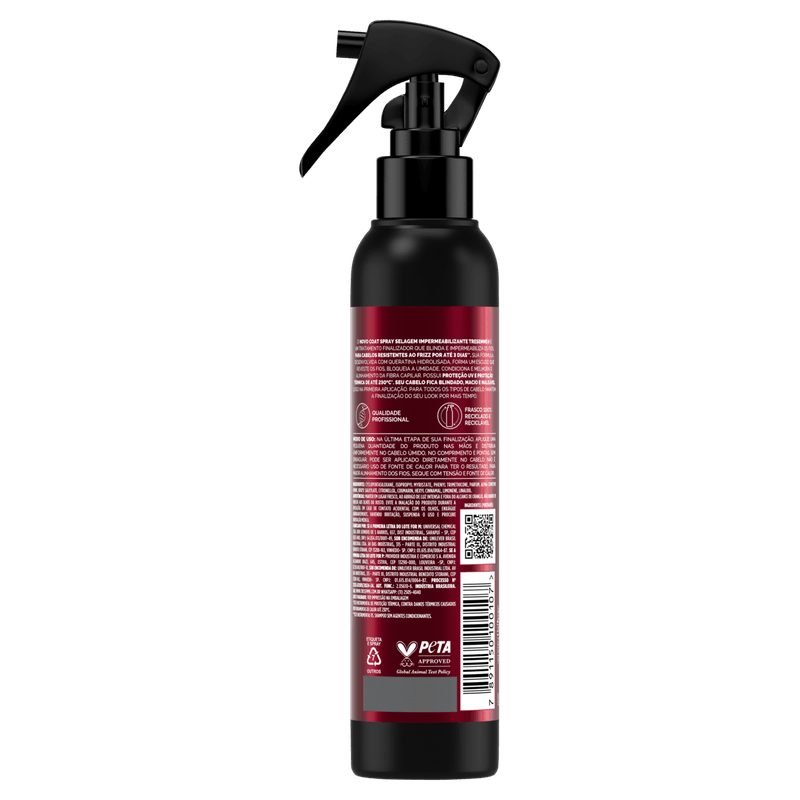 O Finalizador TRESemmé Selagem Impermeabilizante Spray é um spray capilar desenvolvido para proporcionar uma finalização profissional aos cabelos. Com fórmula avançada, ele protege os fios contra agressões térmicas, como secador, chapinha e babyliss, enquanto reduz o frizz e garante um acabamento impecável. Sua ação promove um toque macio, brilho e movimento natural, deixando os cabelos selados e protegidos.