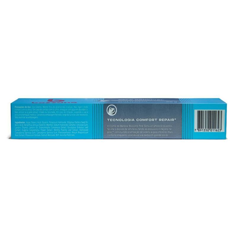 Para um barbear mais suave, o Creme de Barbear Bozzano Pele Sensível é uma excelente escolha. Com tecnologia Comfort Repair, o creme barbeador atua nas três etapas do procedimento: amolece os pelos e prepara a pele; evita cortes e aumenta o deslize das lâminas; estimula a regeneração da epiderme facial.