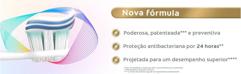 ***Combatendo bactérias e mau hálito por até 12 horas, com uso contínuo por 4 semanas.