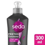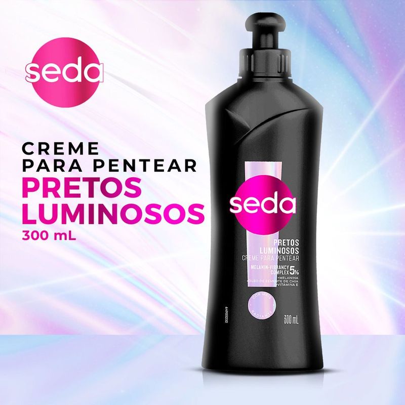 MODO DE USO: O creme para pentear Seda Pretos Luminosos deve ser aplicado no cabelo úmido, do comprimento às pontas (evitando a raíz), sem necessidade de enxágue, Depois penteie e finalize como de costume. O resultado são cabelos alinhados e brilhantes. Experimente toda a linha SEDA Pretos Luminosos, uma linha desenvolvida para cabelos pretos.
