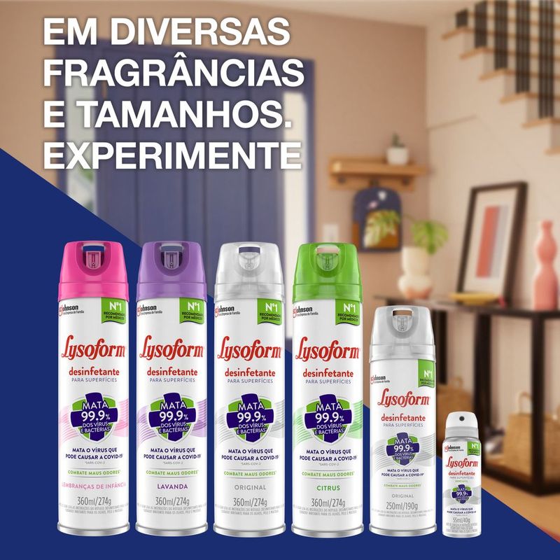 Lysoform Aerossol é um produto versátil, que mata 99.9% dos vírus, bactérias e fungos, incluindo o vírus que pode causar a COVID-19 (SARS-CoV-2). A marca mais recomendada por médicos para desinfetar sua casa, para que você possa aproveitar todos os momentos sem preocupações. Ideal para desinfetar e eliminar odores de mais de 100 superfícies.