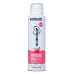 O Desodorante Monange Proteção Seca é antitranspirante de alta performance e garante proteção 48 horas. Possui uma fragrância floral suave com perfeito equilíbrio reconfortante do talco, deixando a pele com sensação prolongada de banho. Com rápida absorção, o desodorante proporciona toque seco, pele macia e nutre até a 2ª camada da pele*. A linha de desodorantes Monange não contem álcool etílico em sua formulação e é dermatologicamente testada.*A segunda camada da pele é a subcórnea da epiderme e os resultados foram obtidos por meio de prova instrumental."