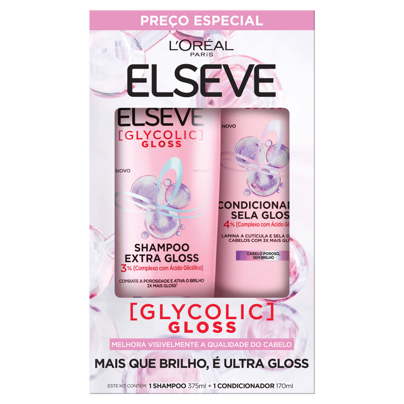Kit Shampoo 375ml + Condicionador 170ml L'oréal Paris Elseve Glycolic Gloss Preço Especial
