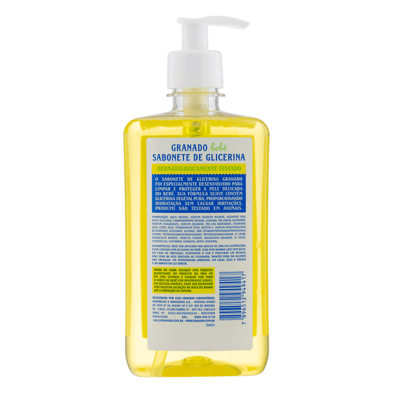 Sabonete Líquido de Glicerina Granado Bebê Frasco 500ml Pump.